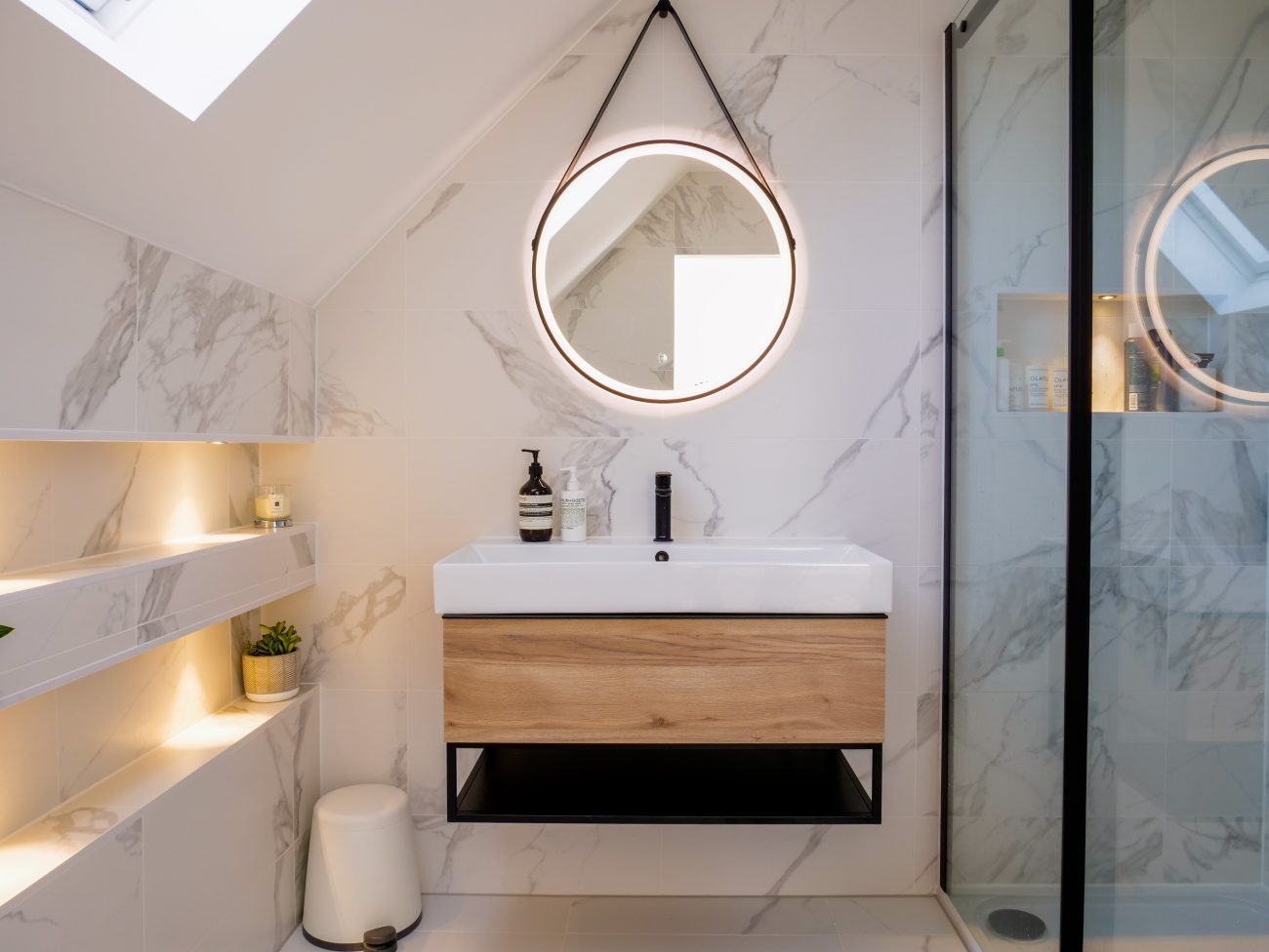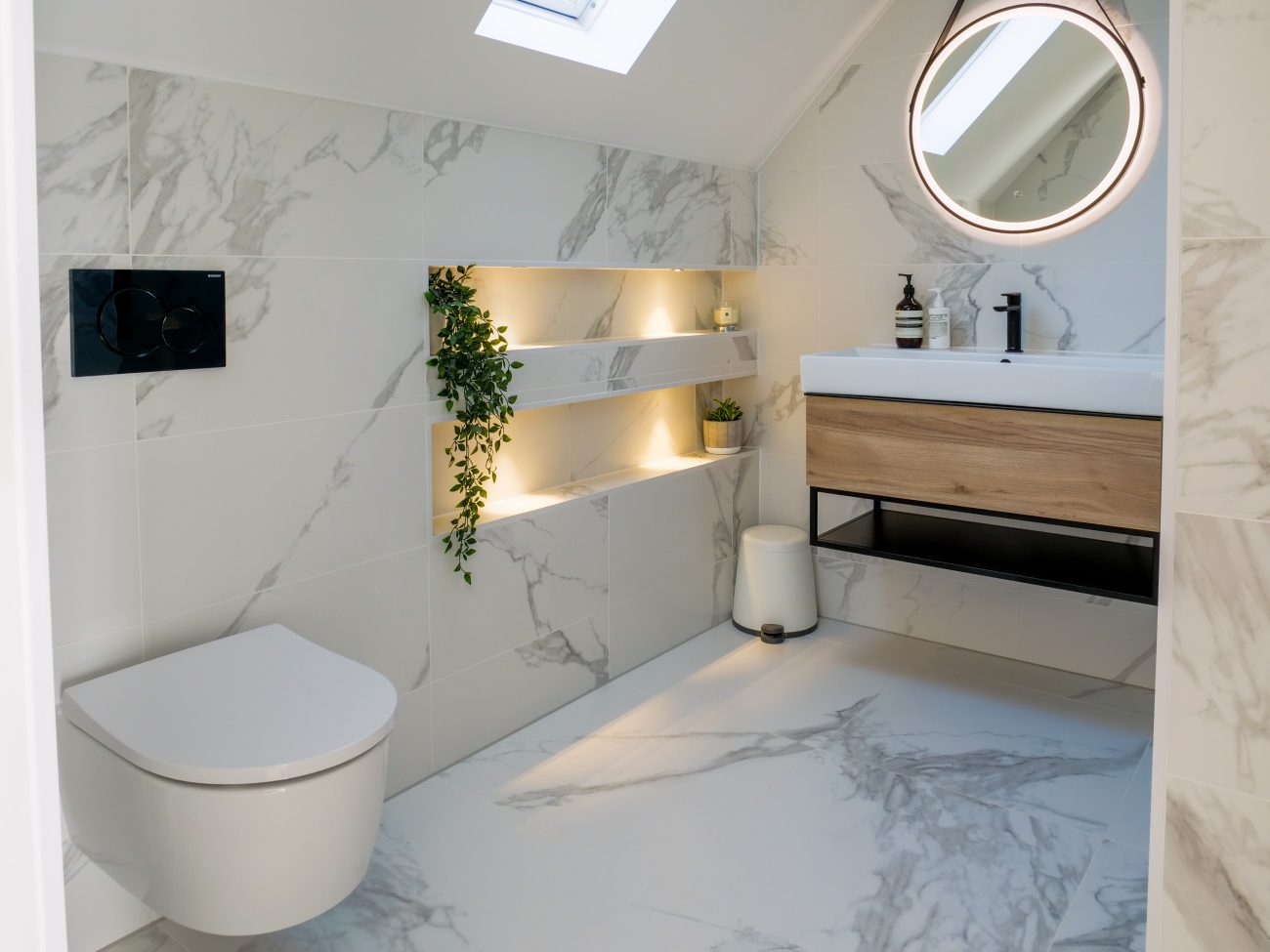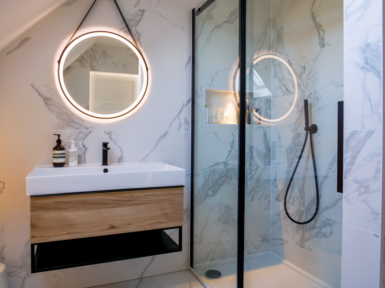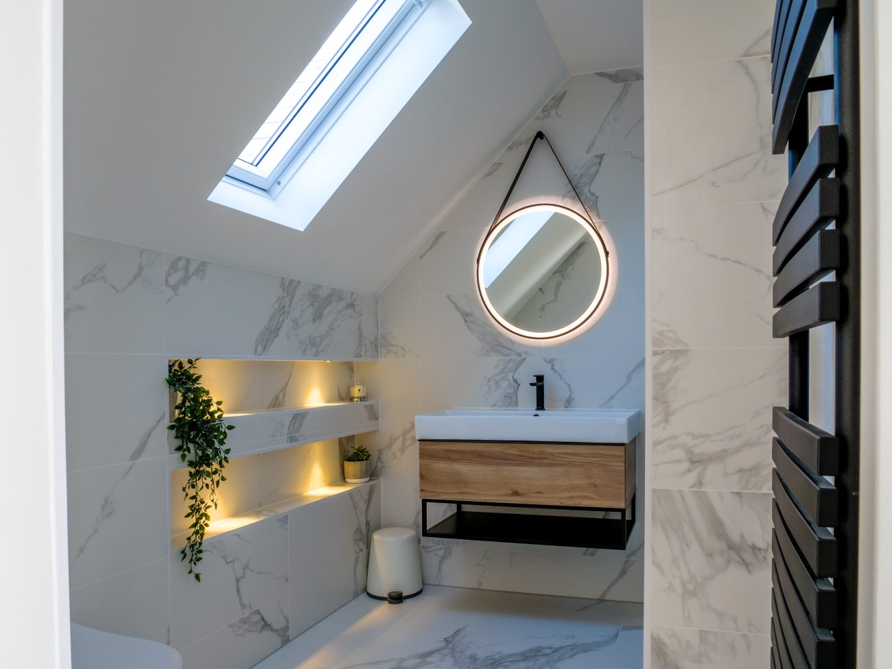 Once a dark, small bathroom, the addition of the roof light made the new space feel bright and spacious.