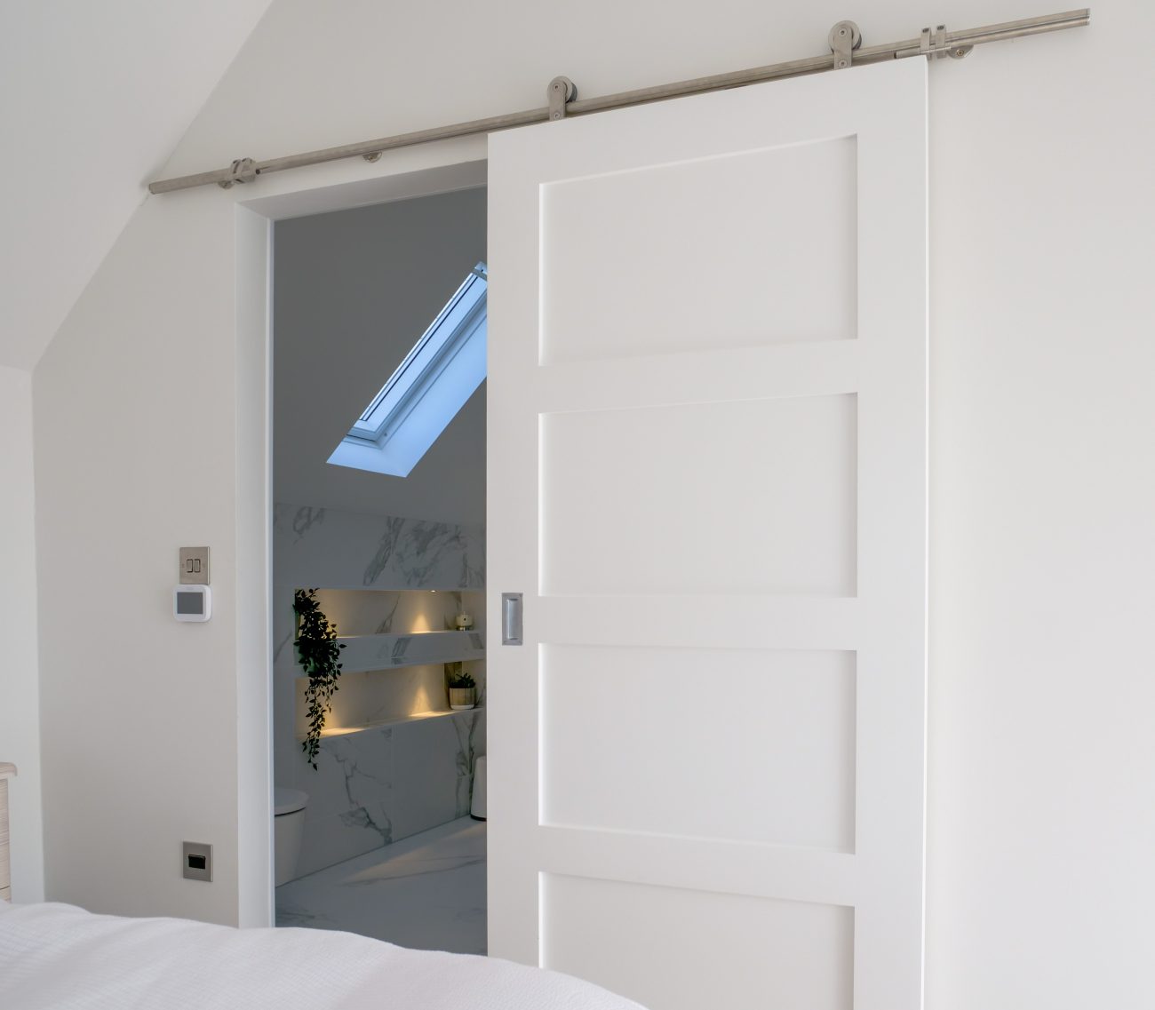 The addition of a sliding door introduced more space to both the en-suite and bedroom, also becoming a design feature in both rooms.
